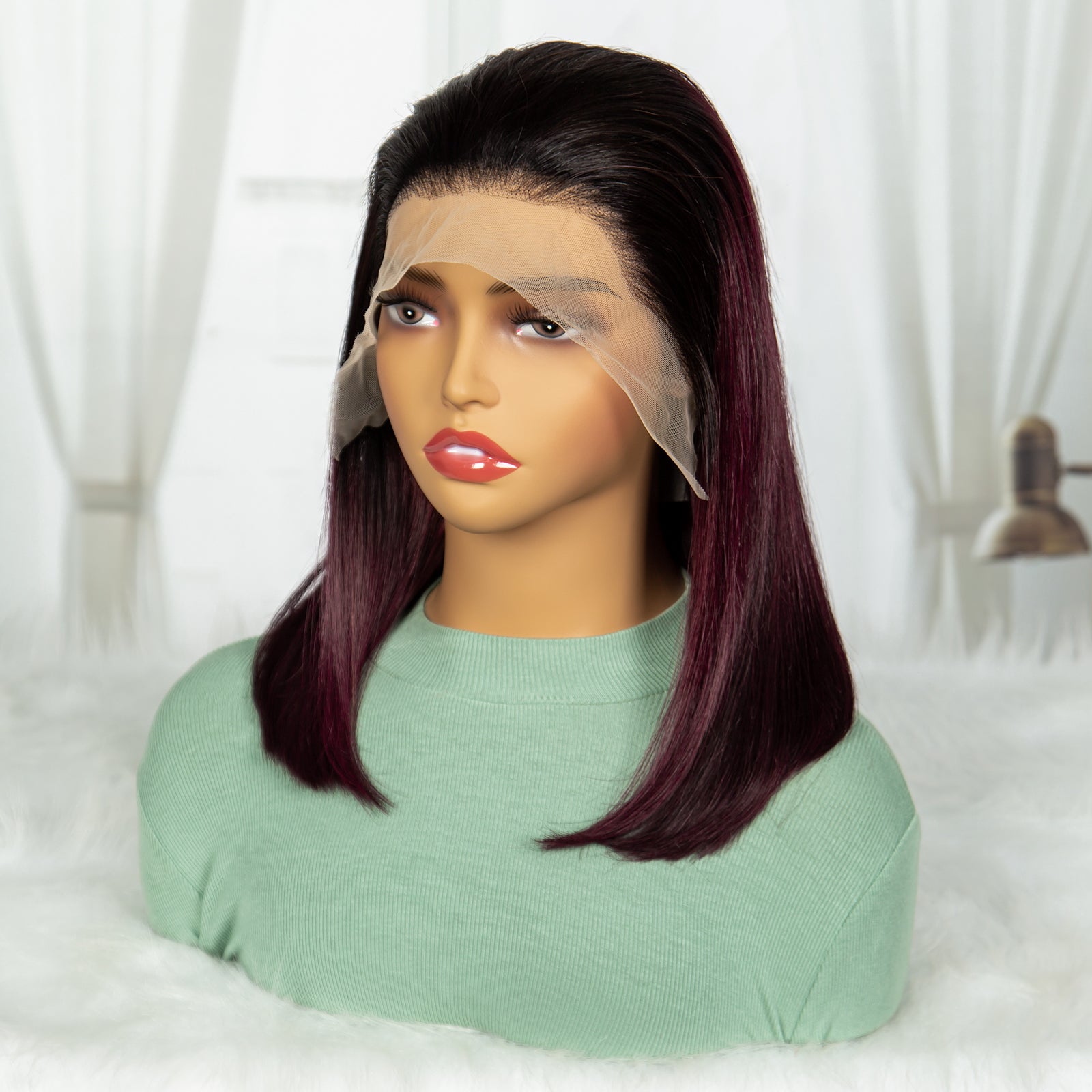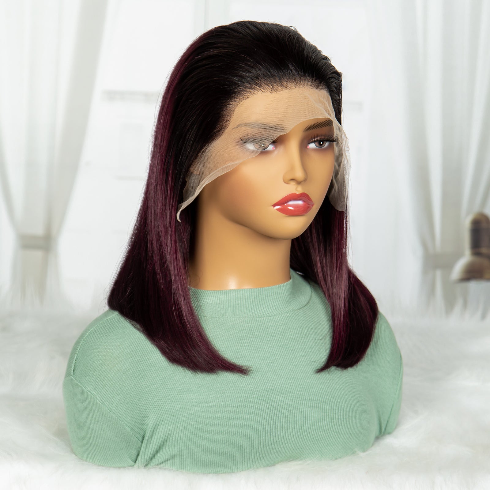 Anytime Ombre 99j Bob Straight Human Hair Wig Double Drawn Hair 200% Density