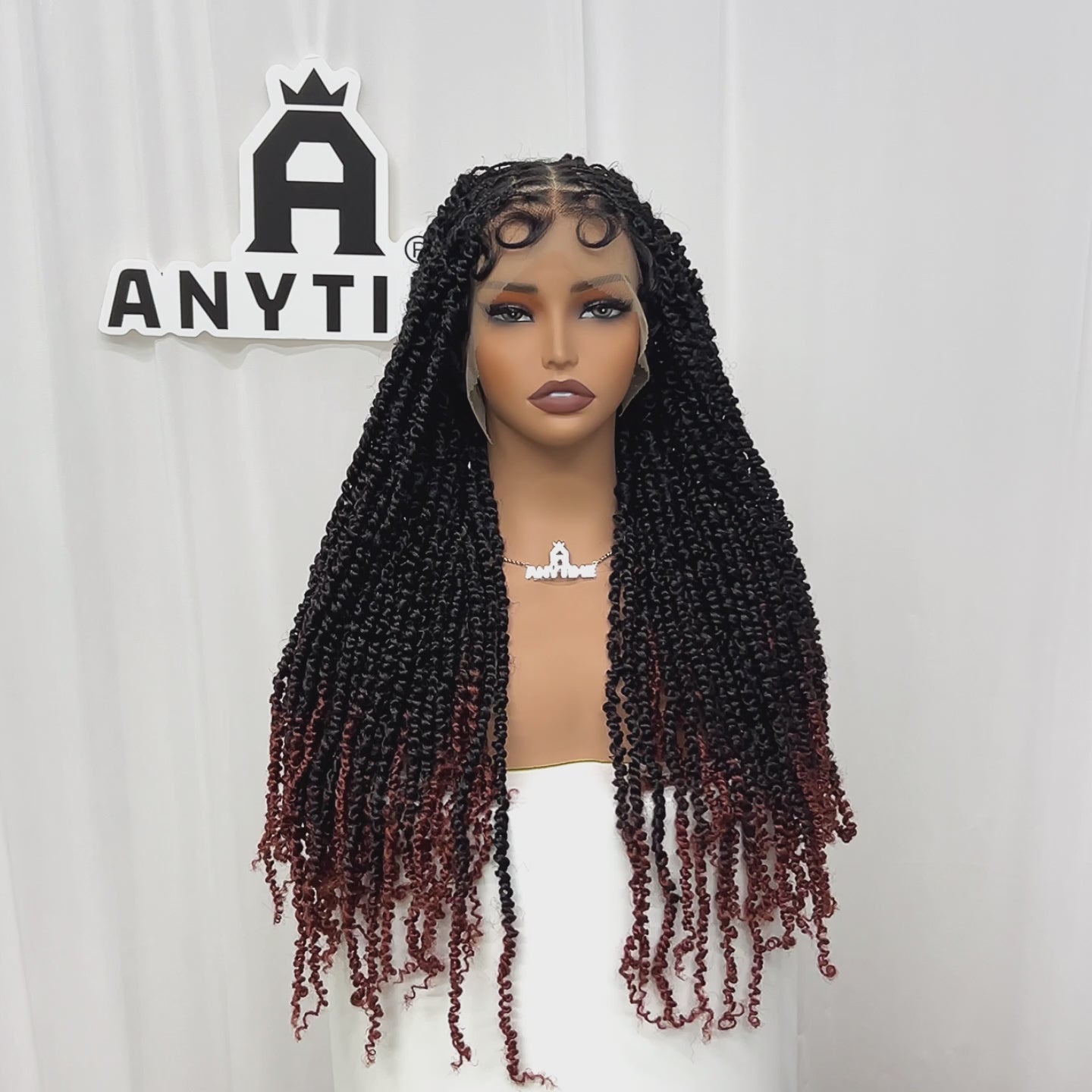 Anytime Wig Synthetic Braided Wig Full Lace Twisted Braids Hair Wig for Black Women Girls 26 inches