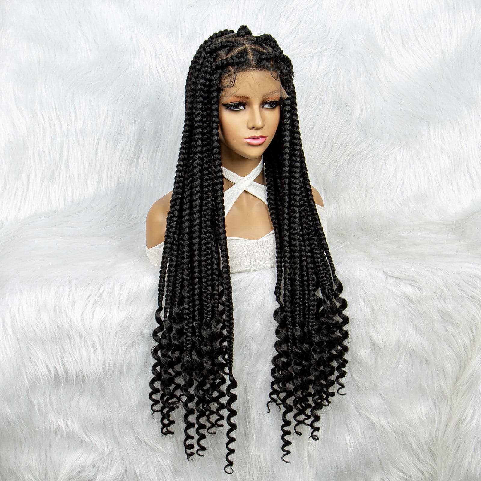 Anytime – perruques tressées synthétiques transparentes, 34 pouces, avec extrémités bouclées, boîte sans couture, perruques tressées pour femmes