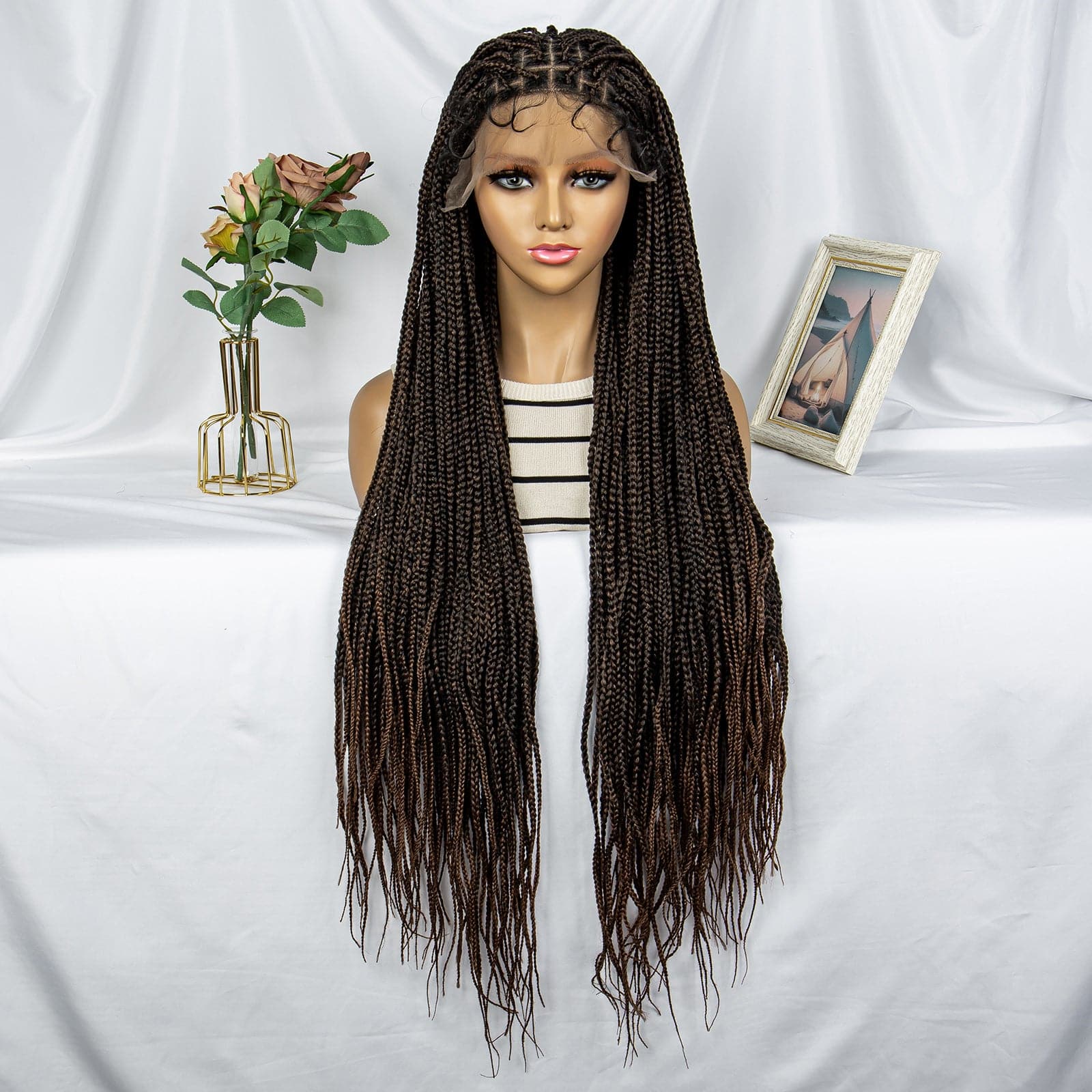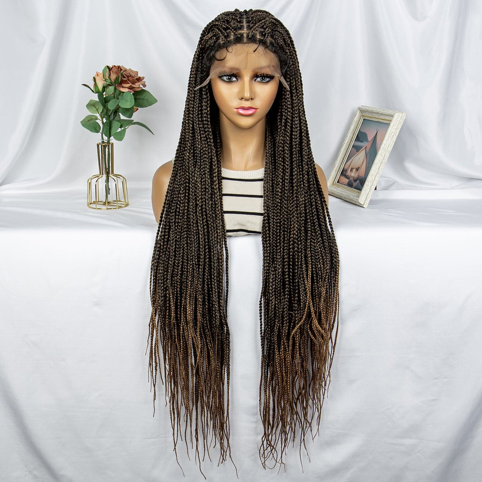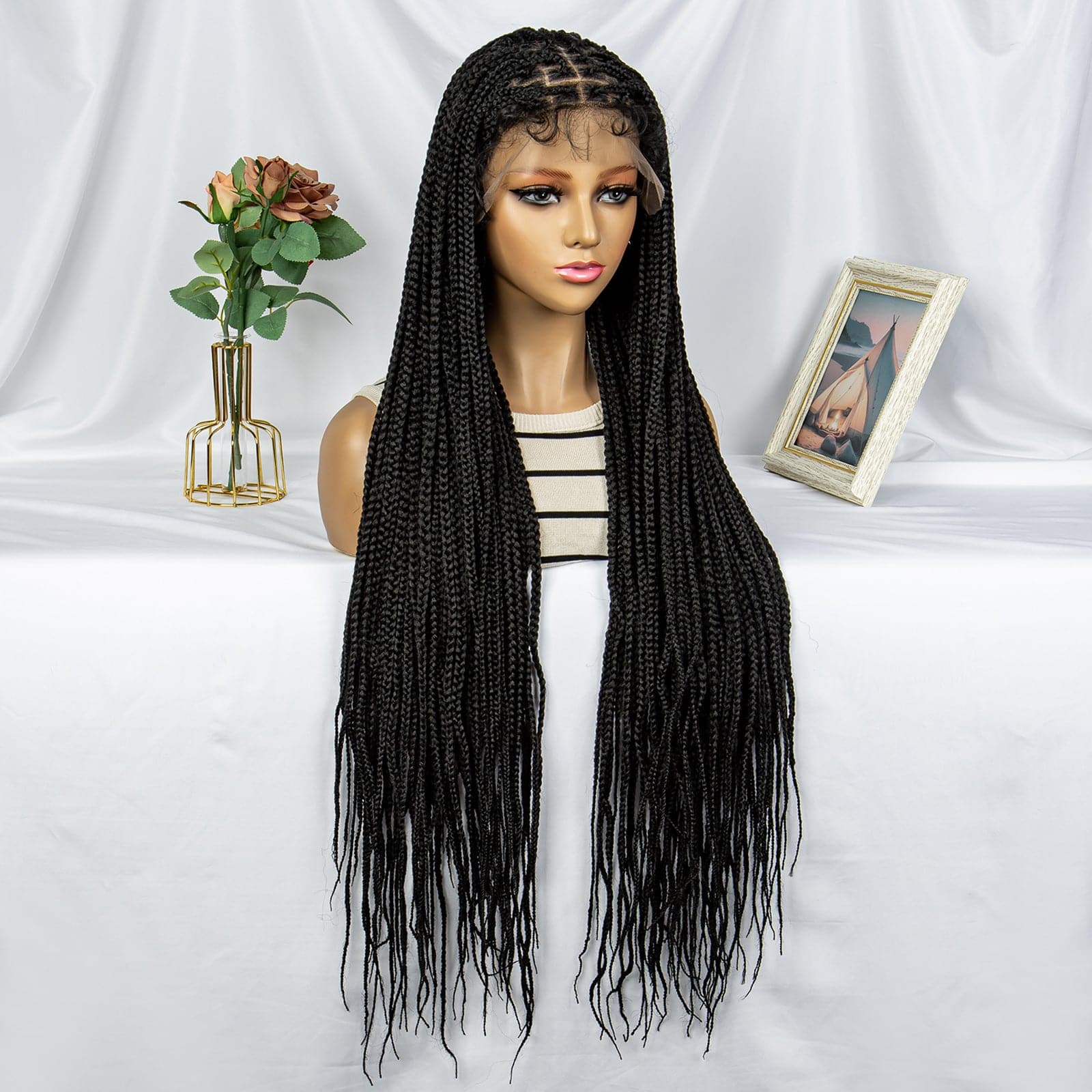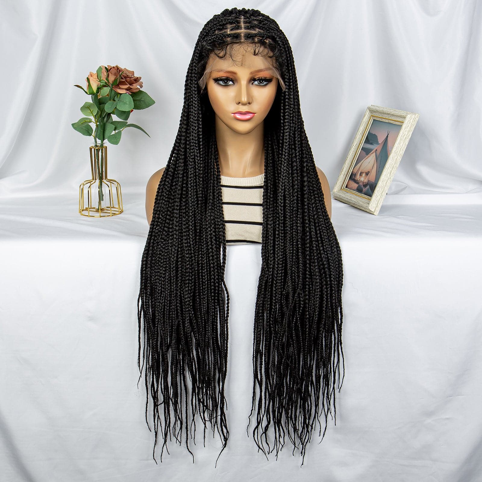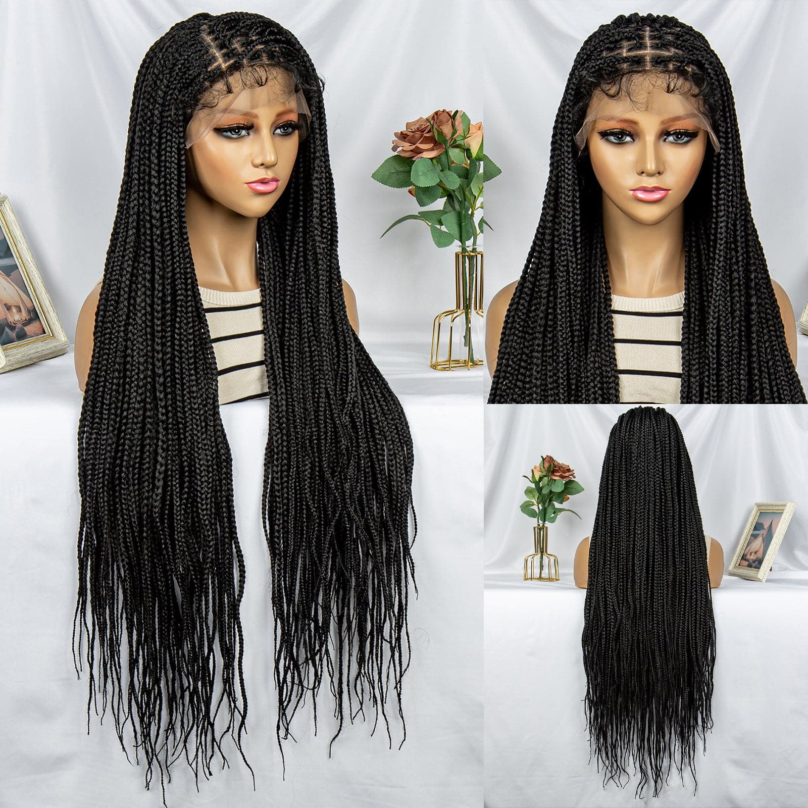 Transformez votre look avec notre superbe perruque tressée Cornrow ! Dotée d'un Lace Frontal 9X6, cette perruque noire naturelle offre une finition élégante et impeccable. À 36 pouces, il offre des mèches longues et succulentes qui feront tourner les têtes.
